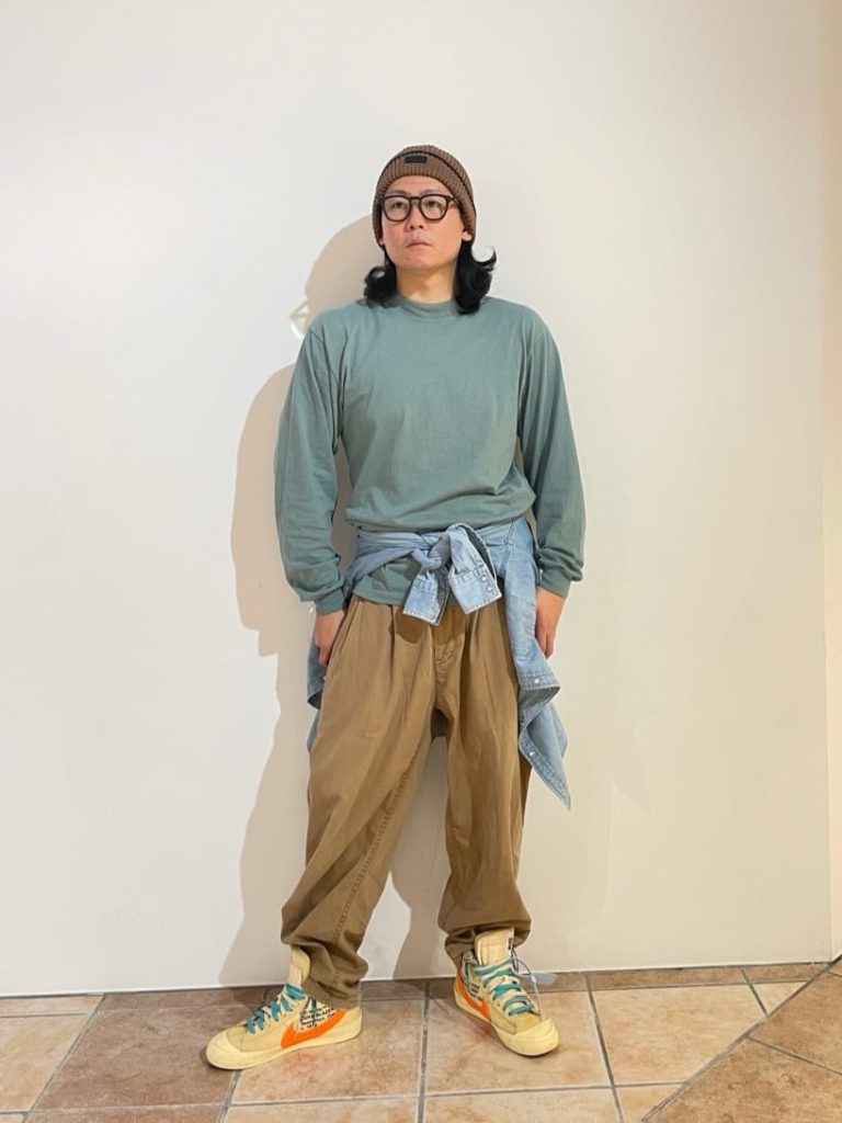 くすみカラーやアースカラーを使った着こなしは、今の気分にぴったり。ここに安易に黒のニット帽を合わせずに、きちんとニュアンスカラーでまとめることで、全体の調和が図れるはず。ルーズなシルエットでも、ラフすぎず洗練された大人の休日スタイルに仕上がります。