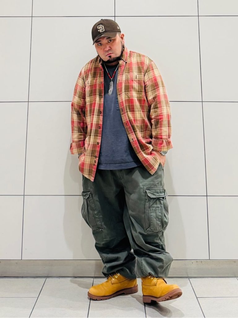 王道のアメカジスタイルを、ブラウンのキャップで大人っぽくまとめて。このコーディネートの鍵は、ブラウンを随所でリンクさせ、全体に統一感を持たせているところ。渋みのあるカラーでまとめることで、カジュアルながらも落ち着いた雰囲気が醸し出されています。ゆったりとしたシルエットで、こなれ感たっぷりの仕上がりに。