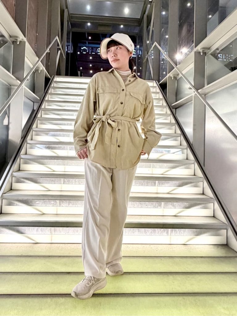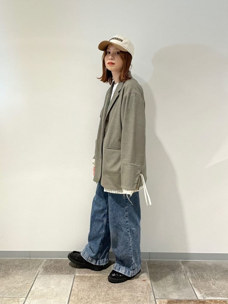 カーキキャップ×ジャケットの大人レイヤードコーデ【レディース】