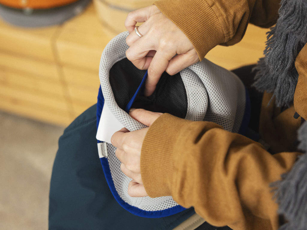 天野:もうサウナハットを持ってるっていう方に特におすすめしたいのは、このサウナハットです。サウナハットに必要な機能はもちろんあるんですが、一番の特徴は、内側に氷を入れることができるポケットがついていることです。