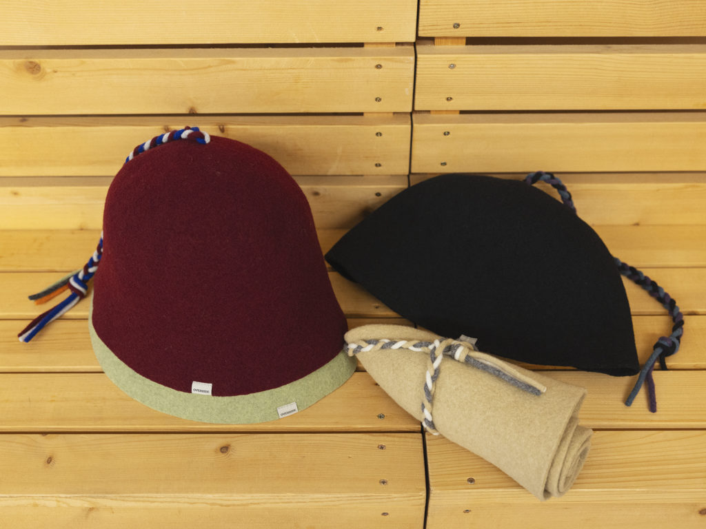 aki:そういえばオーバーライドのサウナハットって、ほかで見るようなタオル生地だったり、ウールで手作りしたようなものってないですよね。