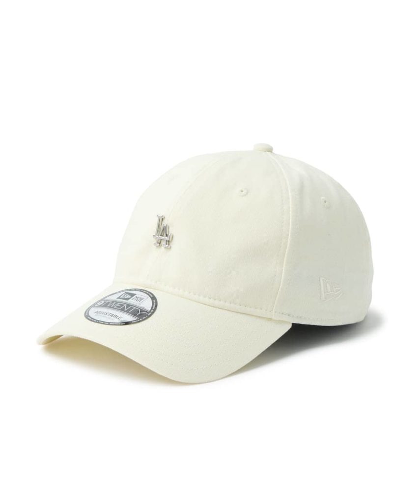 白に近いアイボリーは、フェミニンコーデに合わせやすいニューエラキャップの代表格。ペールトーンのワンピースなどに合わせても、ミスマッチにならずにカジュアルさをプラスできます。ロゴカラーもアイボリーで揃えたアイテムで、きれいめにまとめて。