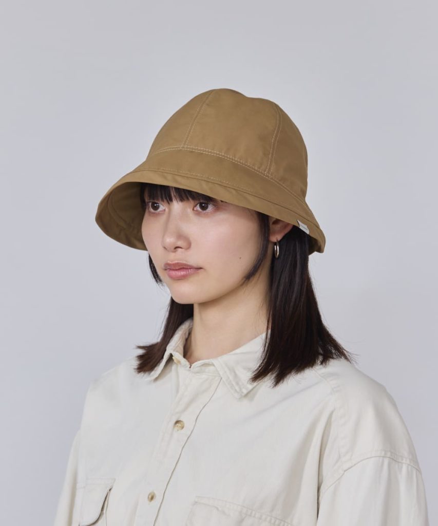 撥水加工と花粉が付きにくい加工済みの素材を使ったハット。つばの広く下向きになったつばが、髪や顔に花粉が付着するのを防ぎます。もちろん日差し対策にもなるので、春夏の幅広いお出かけシーンで活躍します。こちらも洗濯機洗いOK。