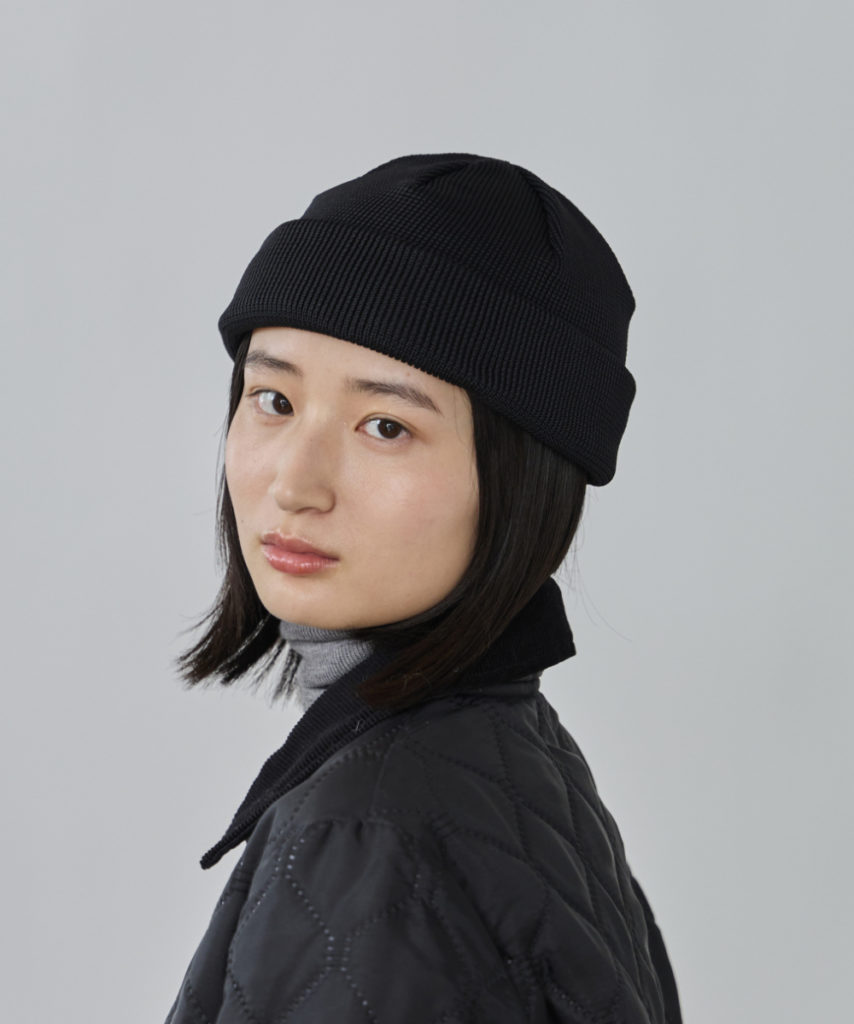 耳が出る深さのショートワッチは、ストリート感のあるスタイリングにぴったりのアイテム。洗濯機対応などの実用性とデザインが支持され、色違いで持つファンも。折り返しを下せばすっきりとしたビーニーとしても使えるので、その日のスタイルに合わせて使い分けて。